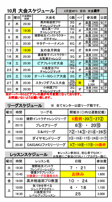 大学ボウル土浦本店・水戸店10月のレーンコンディション